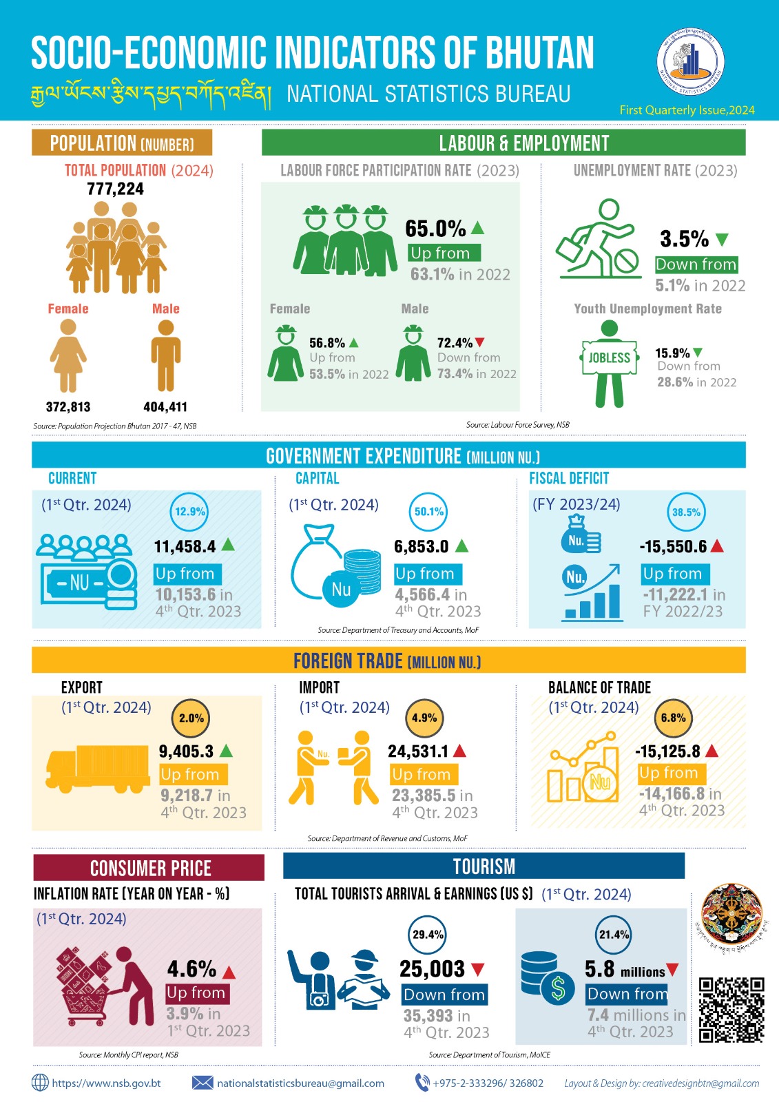 Third Quarter Integrated Agriculture and Livestock Survey, 2025 infographics (1104 downloads ) Socio-Economic Indicators (SEIs) for 3rd Quarter 2025 (1362 downloads ) Socio-Economic Indicators (SEIs) for 2nd Quarter 2025 (1733 downloads ) Socio-Economic Indicators (SEIs) for 1st Quarter 2025 (2284 downloads ) 2024 Labour Force Survey Infographics (2170 downloads ) Consumer Price Index Infographics, February 2025 (2465 downloads ) Socio-Economic Indicators (SEIs) for 4th Quarter 2024 (2458 downloads ) 2024 Fourth Quarterly Labour Force Survey Infographics (2288 downloads ) Socio-Economic Indicators (SEIs) for 3rd Quarter 2024 (2169 downloads ) World Statistics Day 20th Oct 2024 (2664 downloads ) 2024 Third Quarterly Labour Force Survey Infographics (2231 downloads ) Socio-Economic Indicators (SEIs) for 2nd Quarter 2024 (2449 downloads ) Consumer Price Index Infographics, November 2024 (2403 downloads ) Second Quarter Labour Force Survey 2024 Infographics (2235 downloads ) Socio-Economic Indicators (SEIs) for 1st Quarter 2024 (2213 downloads ) 2023 Statistics Infographics (2629 downloads ) Agriculture and Livestock Infographics (2602 downloads ) 2022 Bhutan Living Standard Survey Infographics (2435 downloads ) 2022 Labour Force Survey Infographics (2345 downloads ) 2021 Livestock Census Infographics (2740 downloads ) 2021 Labour Force Survey Infographic (2325 downloads ) 2020 Labour Force Survey Infographics (2352 downloads ) 2017 Population & Housing Census Infographic (2520 downloads )